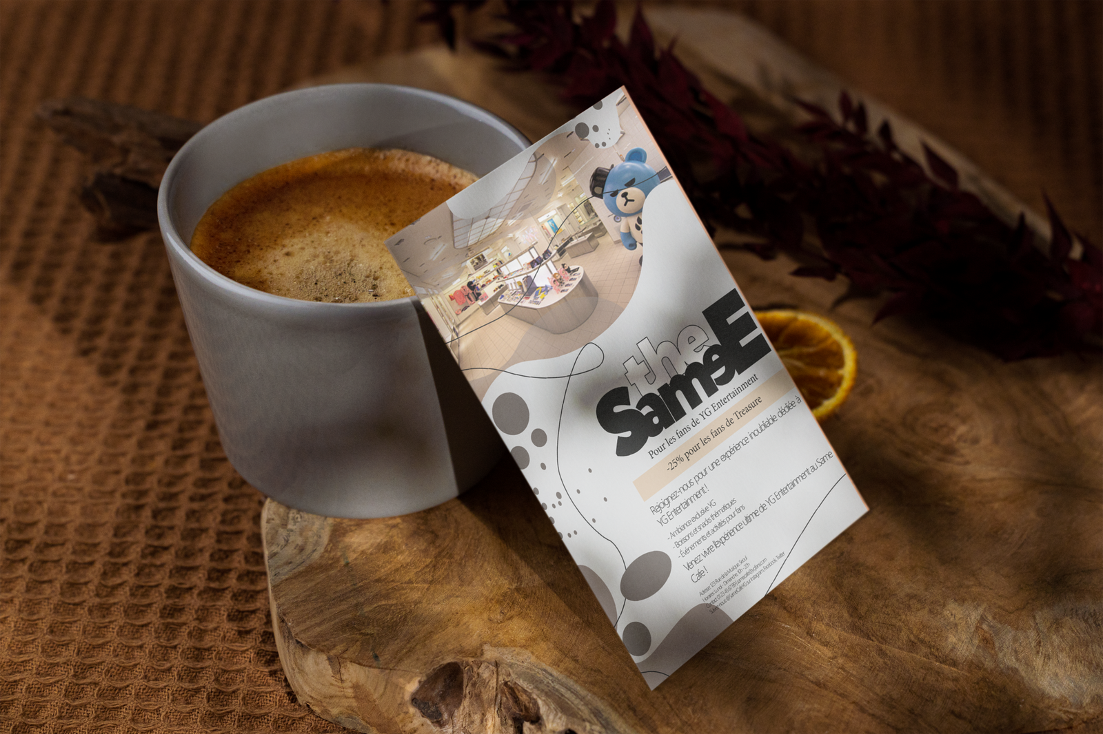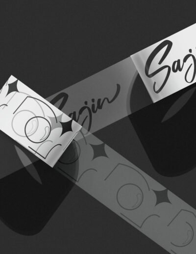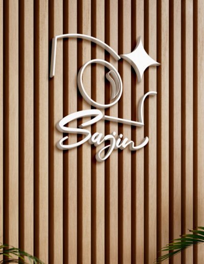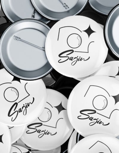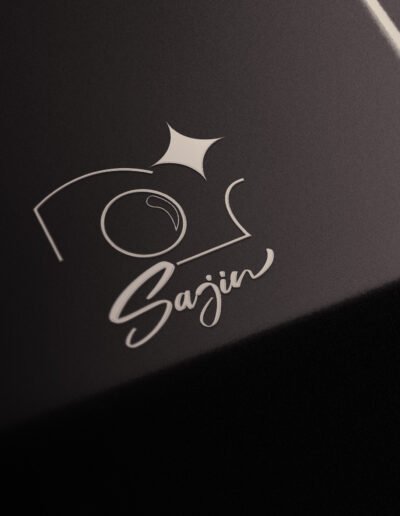 Le nom Sajin, qui signifie «photo» en coréen, est écrit en typographie manuscrite pour transmettre une touche chaleureuse et personnelle, à l’image de l’expérience conviviale proposée en boutique.