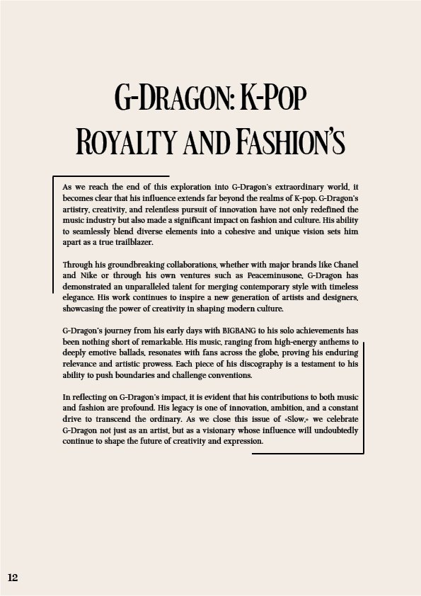 Projet magazine – SLOW, G-Dragon