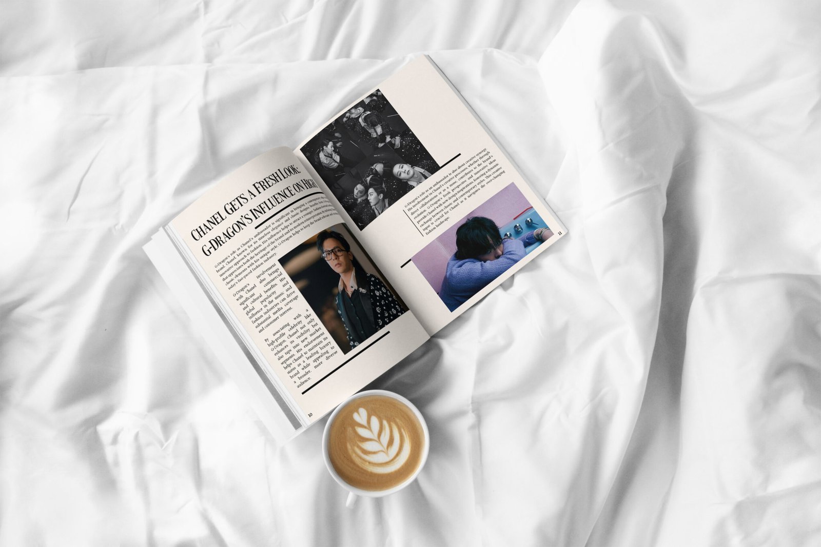 Création d’un magazine dédié à G-Dragon, explorant son influence dans la musique et la mode. L’univers visuel reflète son style unique, avec une mise en page soignée et une direction artistique marquée. Un projet axé sur le design éditorial et la créativité.